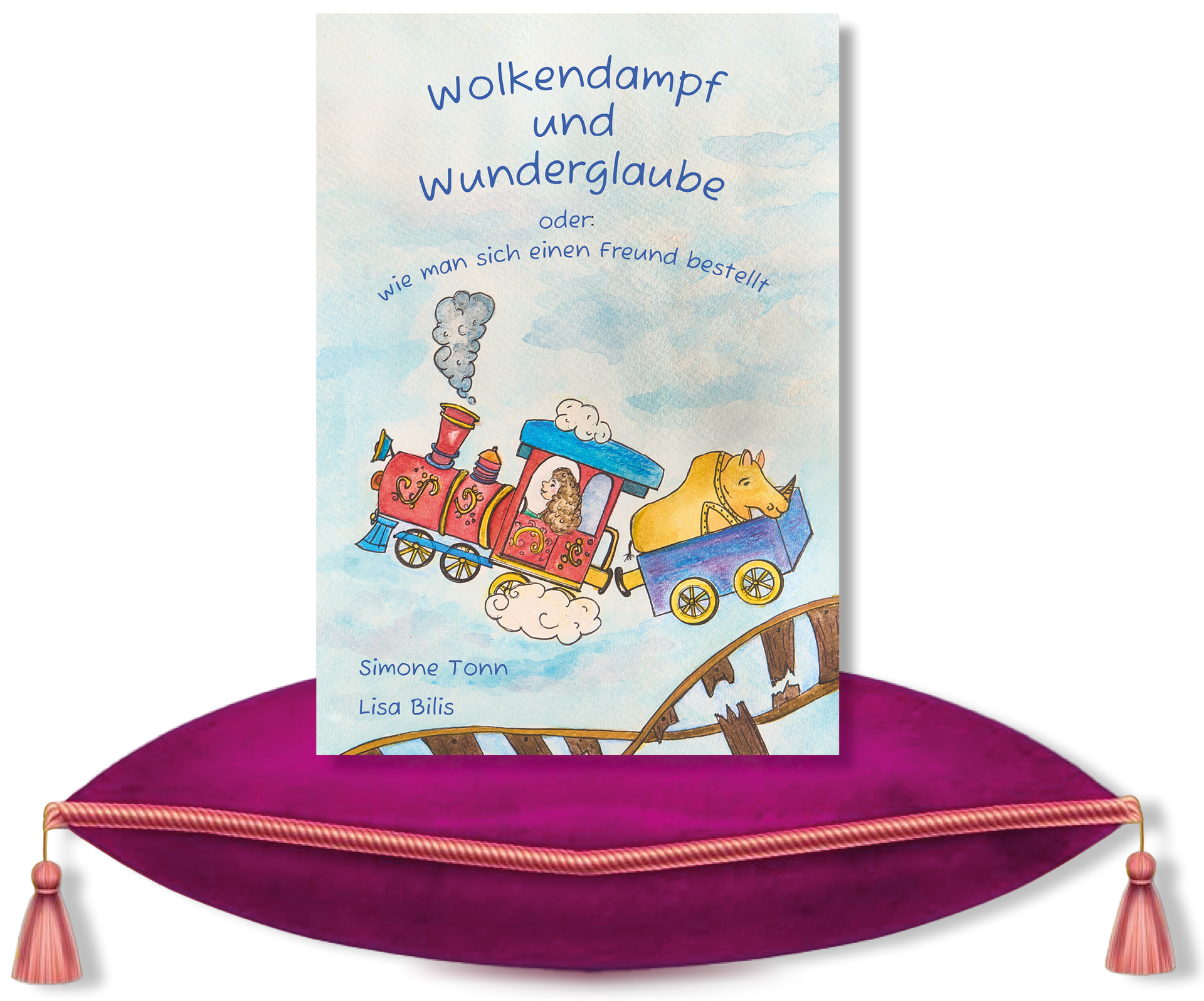 in einer fliegenden Lokomotive, begleitet von einem Rhinozeros